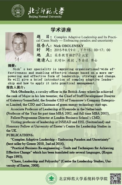 [Lecture] Complex Adaptive Leadership and Its Practical Cases Study, Embracing Paradox and Uncertainty