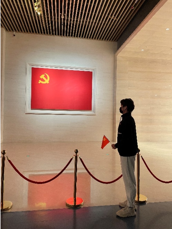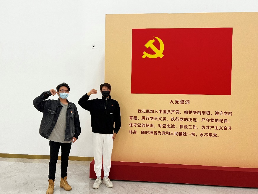 展馆内一件件见证历史变迁的珍贵文物,一份份翔实的历史资料,一幕幕生动的图片视频,一个个精心设计的场景和展示,见证了中国共产党领导中国人民筚路蓝缕、艰苦奋斗的百年征程,让同学们身临其境般地体会到了中国共产党为什么能、马克思主义为什么行、中国特色社会主义为什么好。同学们纷纷表示,要时时刻刻“不忘初心、牢记使命”,继续从党史中汲取力量,担负起时代赋予的使命。同学们来到了入党宣誓厅,面向鲜红的中国共产党党旗,重温了入党誓词。
