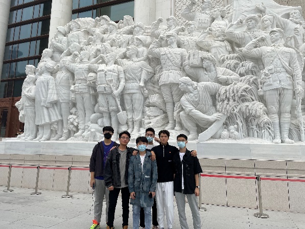 2022年10月1日上午,bet365在线体育投注 二十余名学生按时集合,在中国共产党党史展览馆广场的大型雕塑前合影留念,感受方向的指引和拼搏向上的力量。