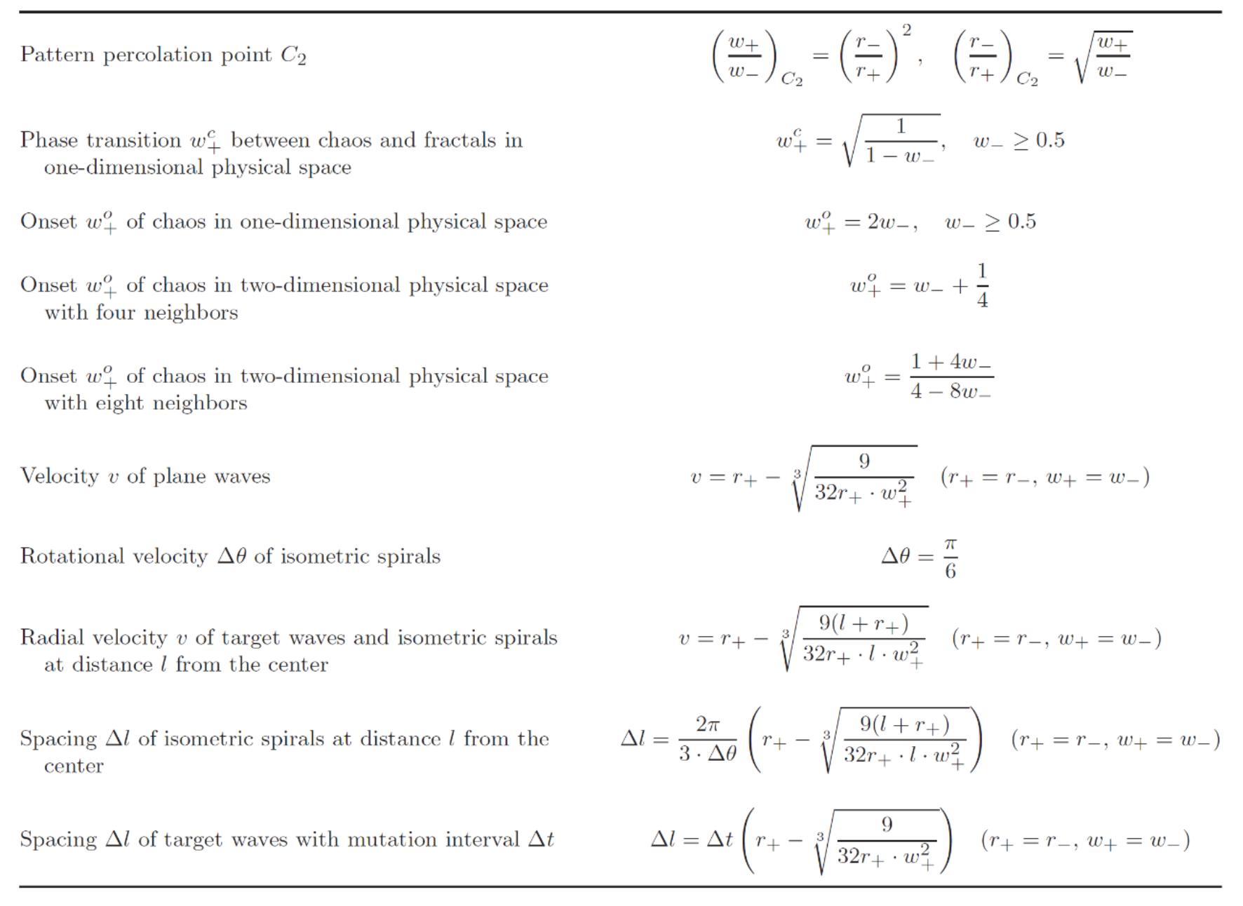 表1:复杂斑图、模式和现象的理论解析解。