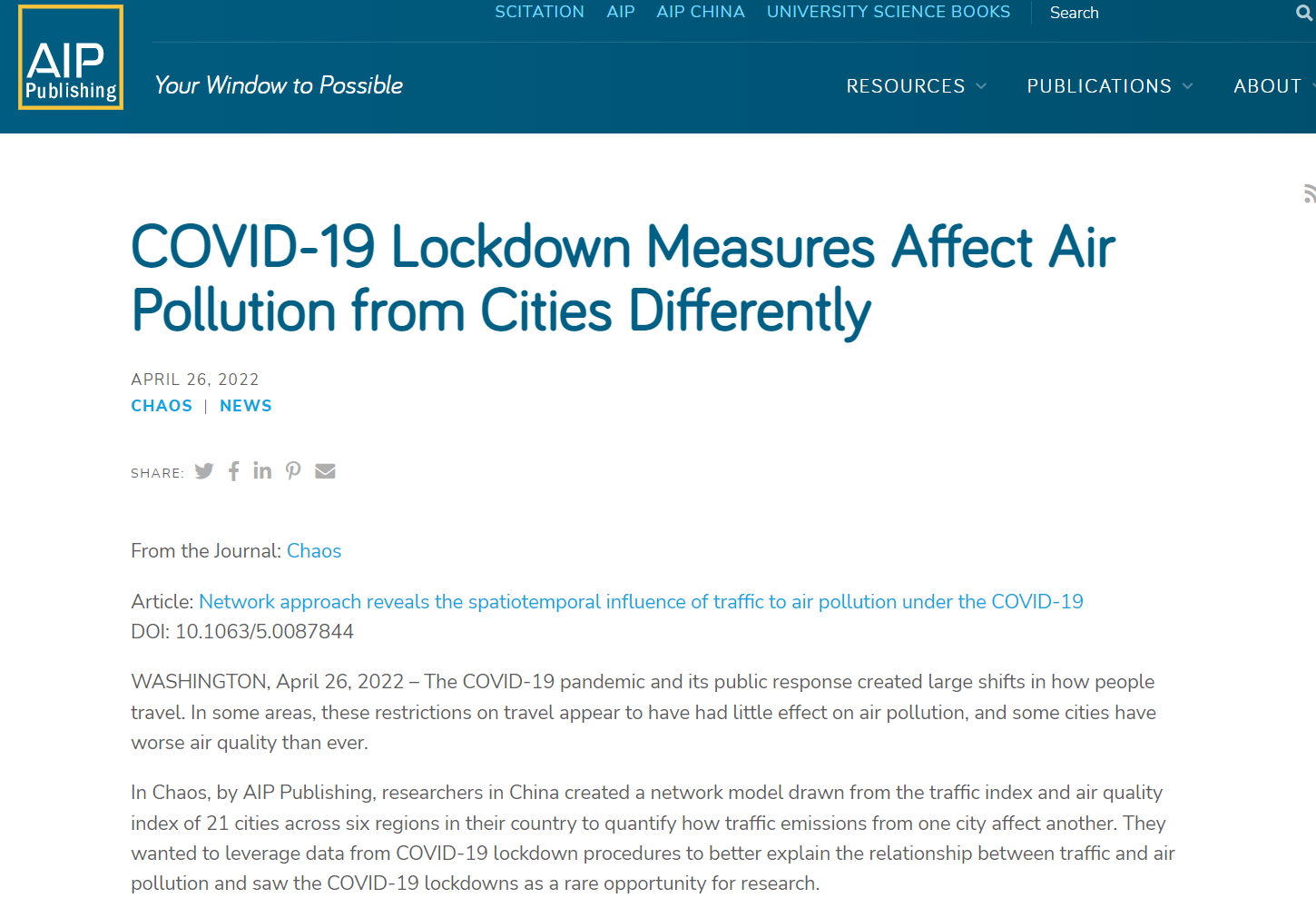 图一 美国物理联合会AIP官网对该研究及其研究团队的采访报道