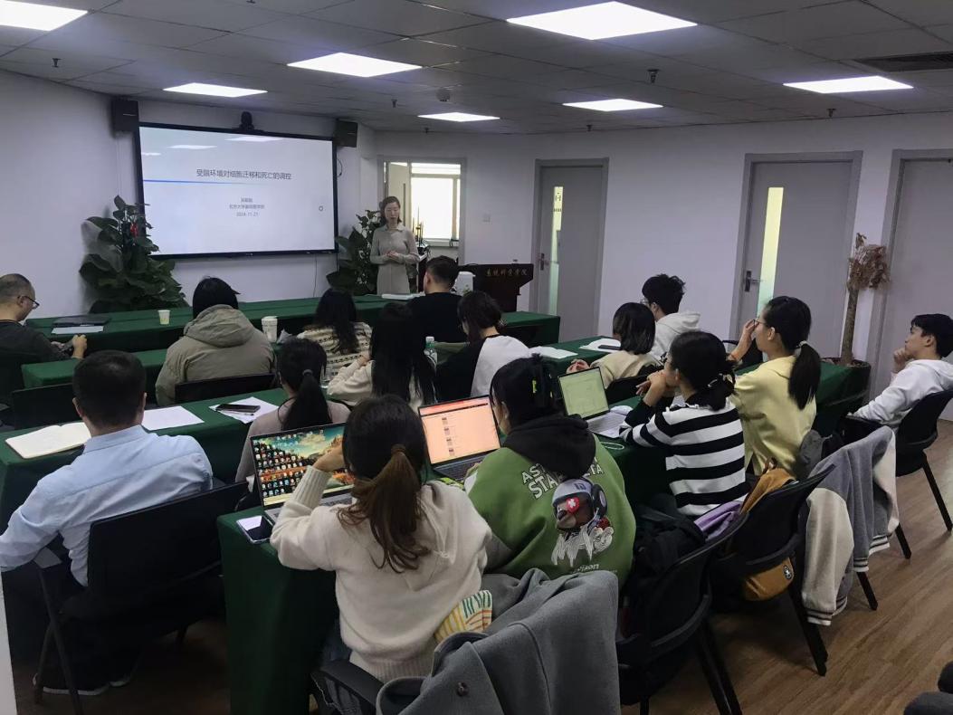 吴研究员的报告数据详实、逻辑清晰,她将复杂的分子机制用简明的语言和生动的案例加以讲解,使在场师生对机械约束与铁死亡的内在联系有了更为深入的理解。报告结束后,与会师生围绕铁死亡的机制及其在疾病研究中的应用展开了热烈讨论,吴研究员一一解答了大家提出的问题,并分享了她团队在这一领域取得的最新进展和未来研究方向。